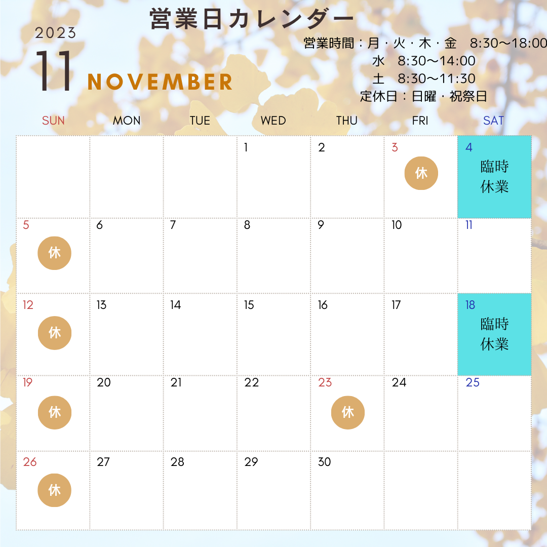 11月の予定表|三豊市のマッサージ・美容施術なら和久整体院へ