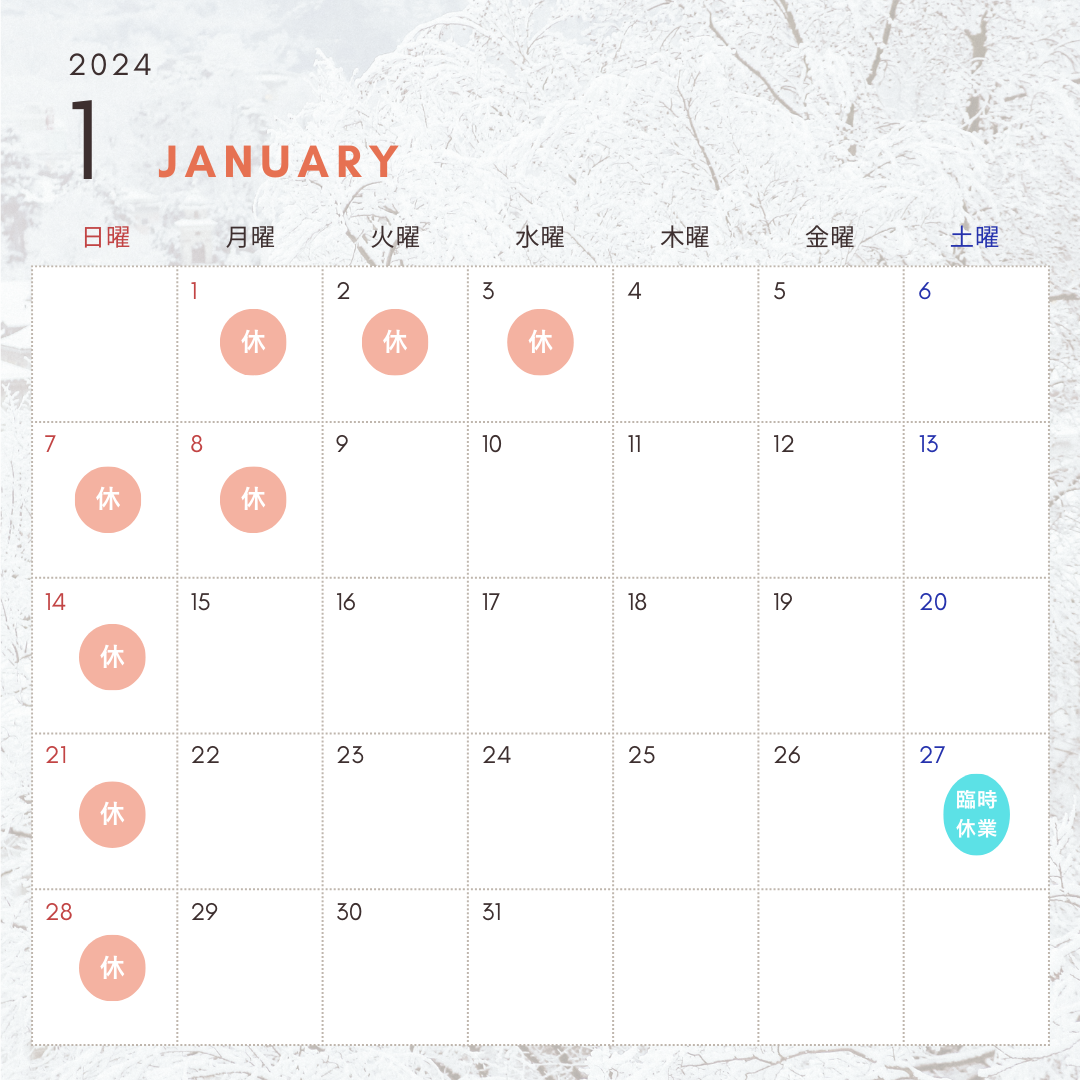 1月の予定表|三豊市のマッサージ・美容施術なら和久整体院へ