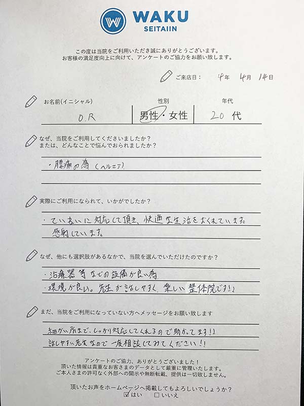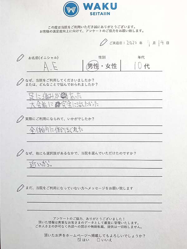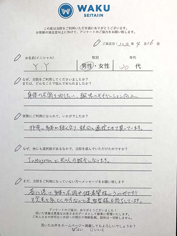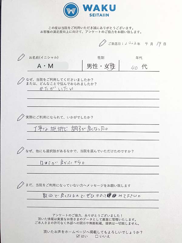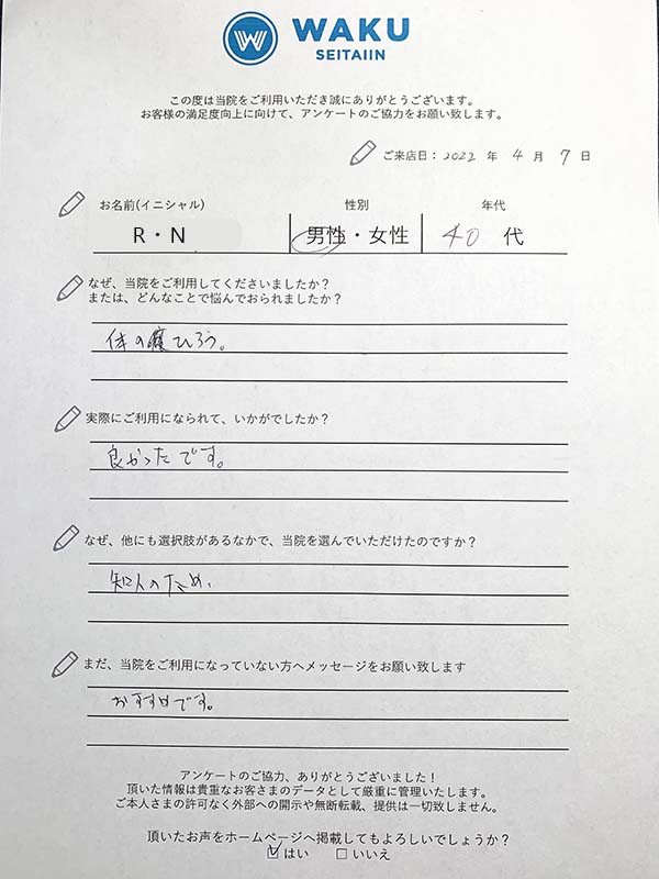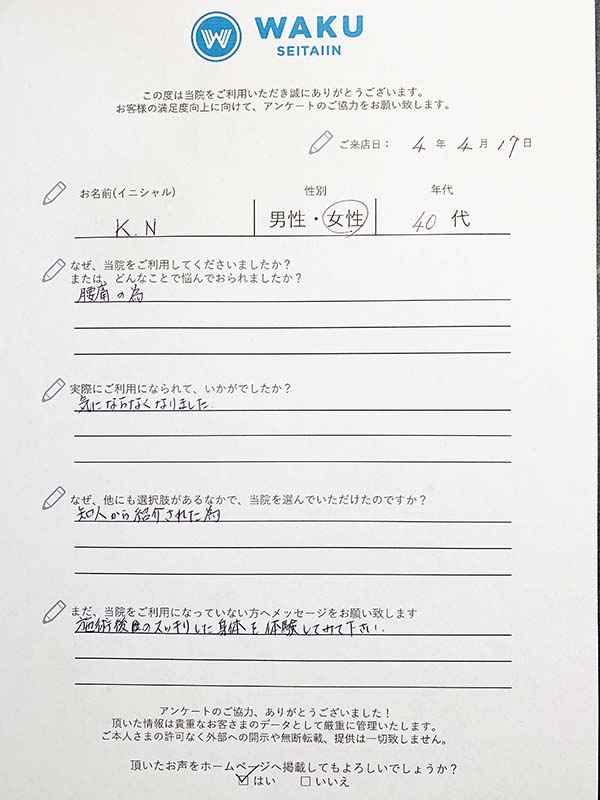 お客様の声|三豊市のマッサージ・美容施術なら和久整体院へ